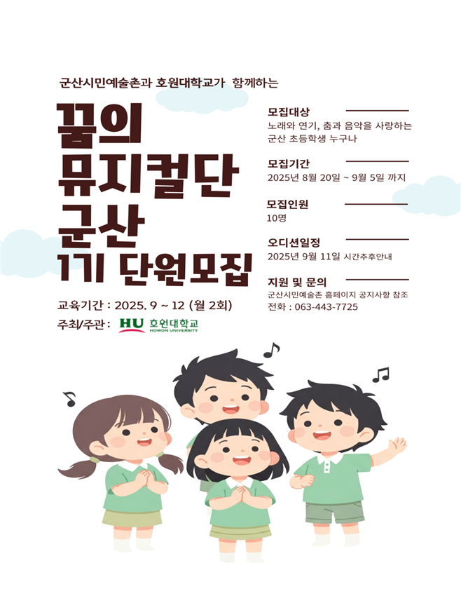 -모집대상 : 노래와 연기, 춤과 음악을 사랑하는 군산 초등학생 누구나