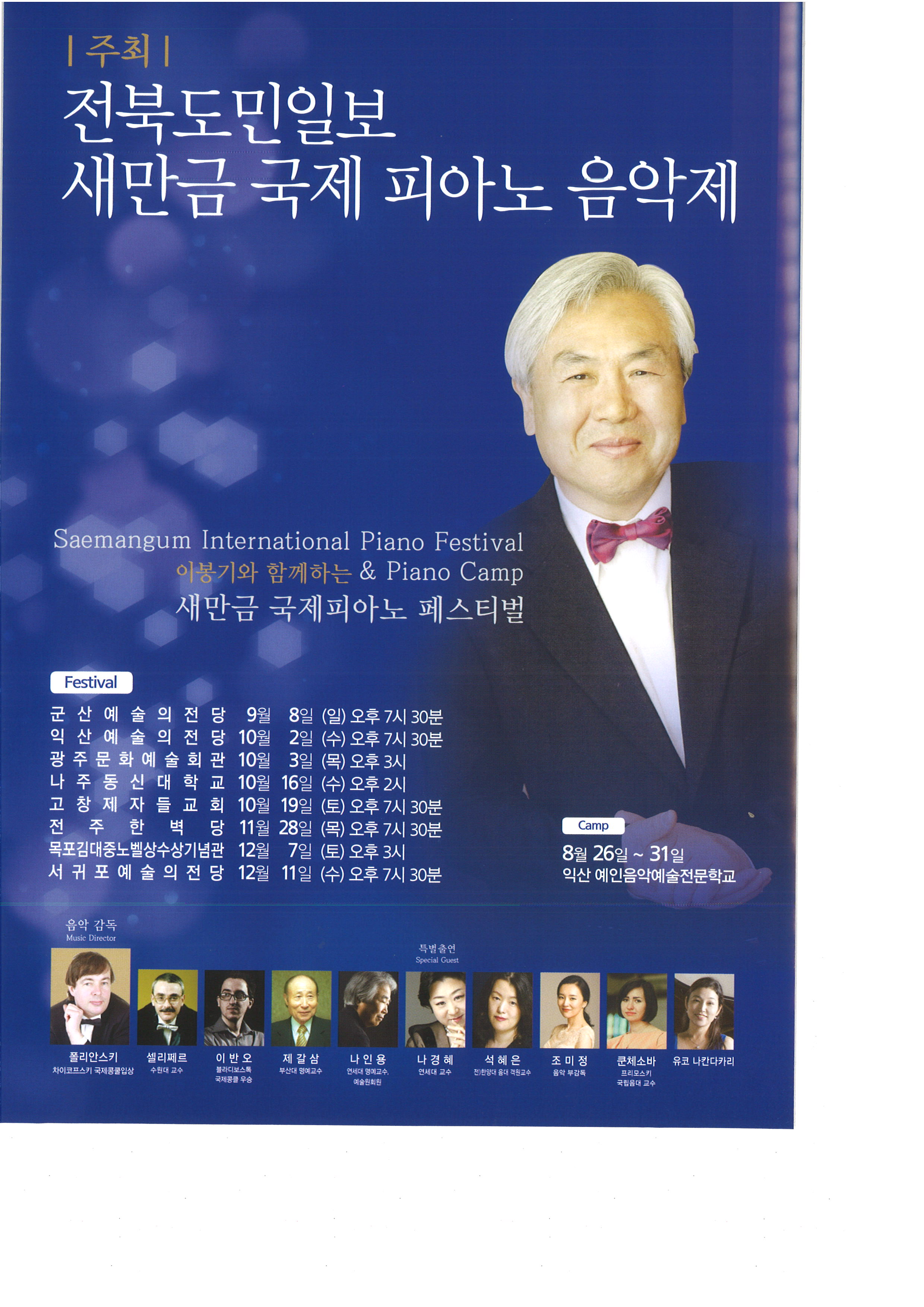 피아니스트 이봉기와 함께하는 새만금 국제피아노 음악제 공연을 붙임과 같이 안내하여 드리니 참고 하시기 바랍니다.