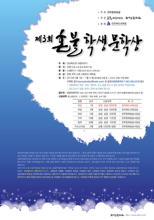 | 5846 | [최명희문학관] 2013년 제3회 혼불학생문학상 |