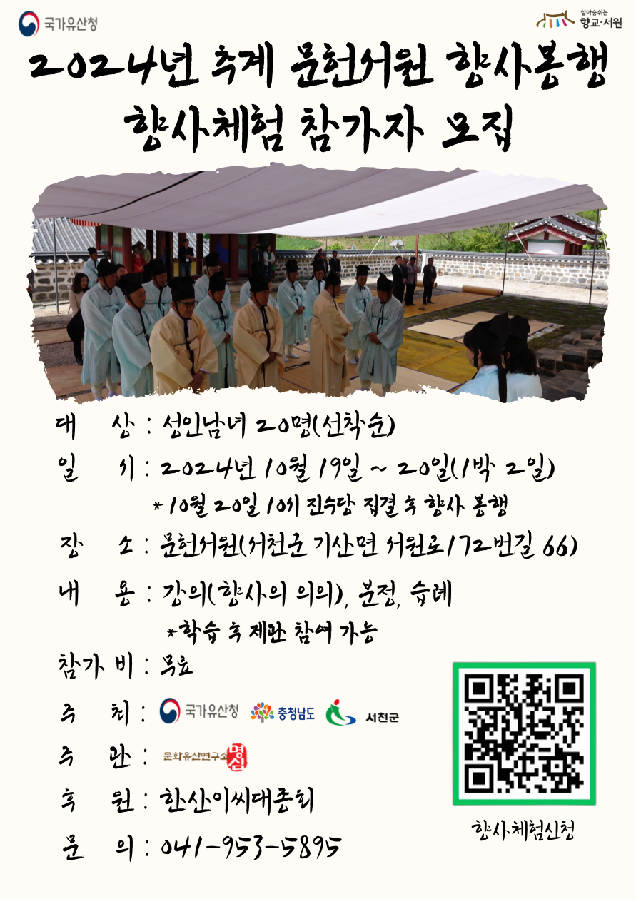 | 8290 | 2024 서천 문헌서원 추계 향사체험 참가자 모집 |