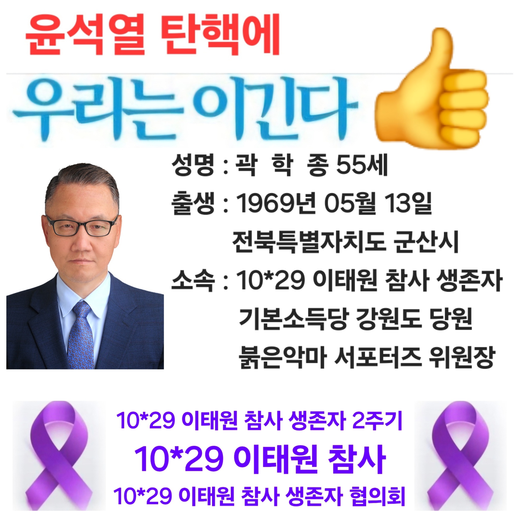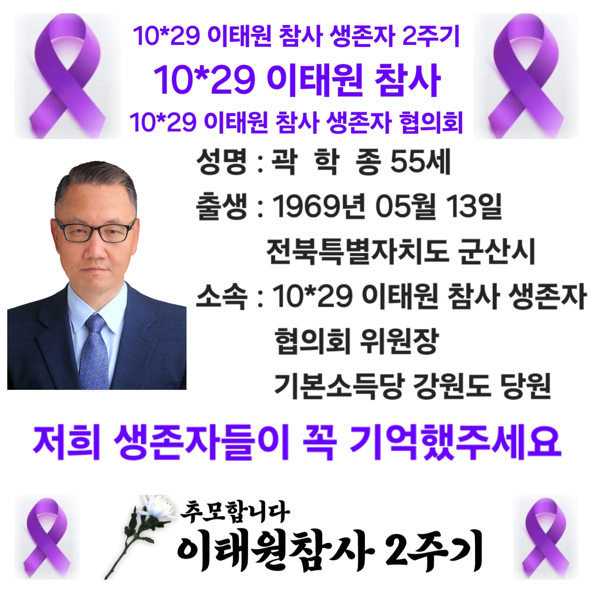 10*29 이태원 참사 생존자 협의회 일동과 위원장 곽학종 올림