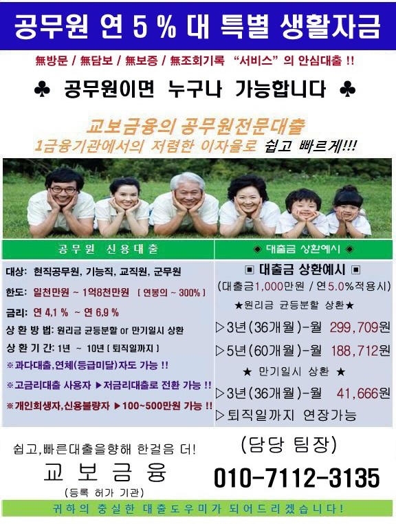 ◆특별생활자금 지원//연~5% 대 공무원만 가능◆