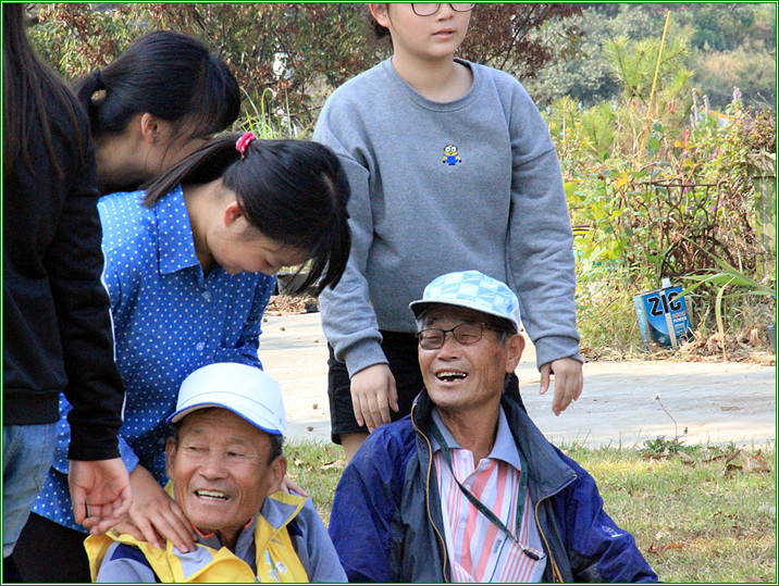 마을 부녀회원님들이 들판에 나와 가마솥에 장작불을 지쳐 햅쌀로 밥을 짓고 전도 부쳐서 마련해주신 점심을 맛나게 먹었습니다. 그러는 사이 일부 아이들은 메뚜기를 잡느라 조심해야 할 벼를 다 밟고 다녀서 맘이 쓰이더군요. 그러나 웬걸 전 제 눈을 의심 하였습니다. 한편에서 할머님들이 빈 그릇 치우는 것을 도우는 여러 어린이, 그리고 벼베기체험을 도와주신 할아버지의 어깨를 주물러 주는 여러 어린이.. 할머니,할아버지 앞에서 재롱 부리는 어린이,,, 와~~~ 정말 이래서 세상을 살맛나고, 이래서 어린이는 나라의 미래라고 하는 모양입니다. 군산 초등학교 교감 선생님을 비롯한 여러 선생님, 그리고 70여명의 어린이 여러분 칭창합니다
