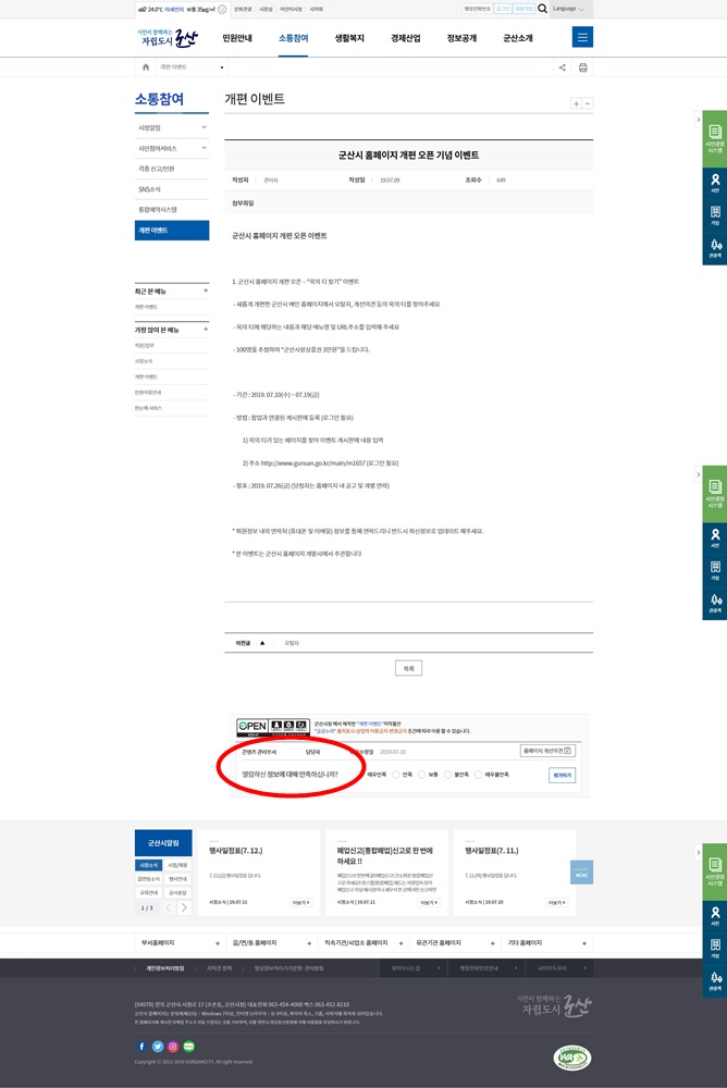 군산시청 디지털정보담당관 정보개발계에서 제작한 "개편 이벤트"저작물은