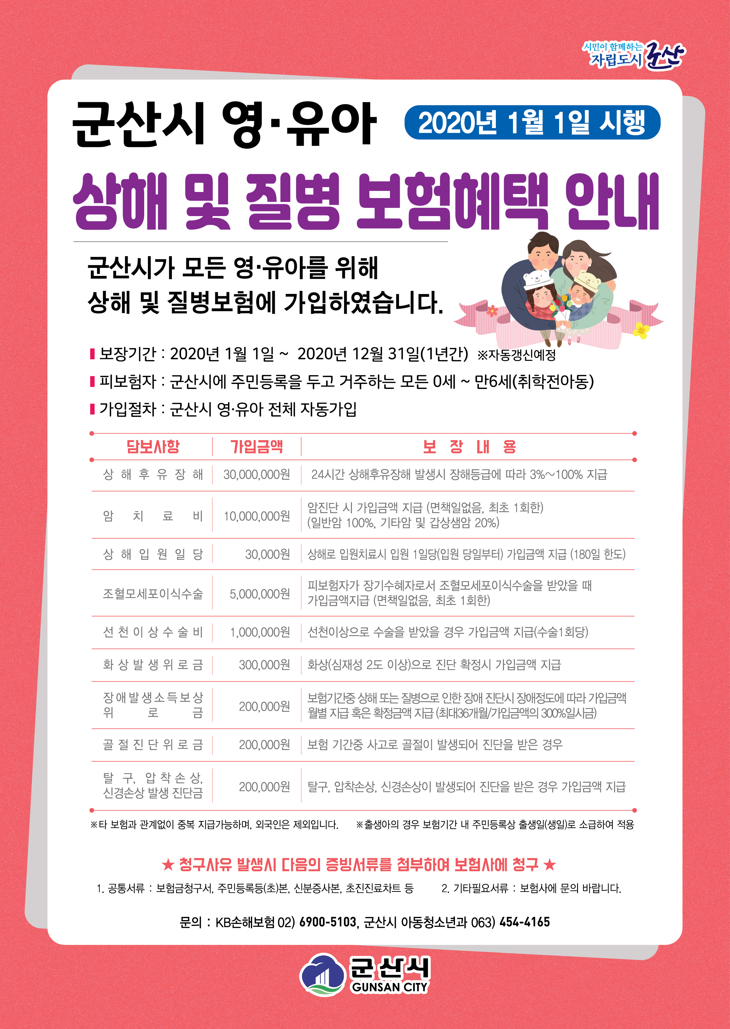※ 기타 자세한 사항은 KB손해보험 02)6900-5103 또는 군산시 아동청소년과 063)454-4165로 문의하시기