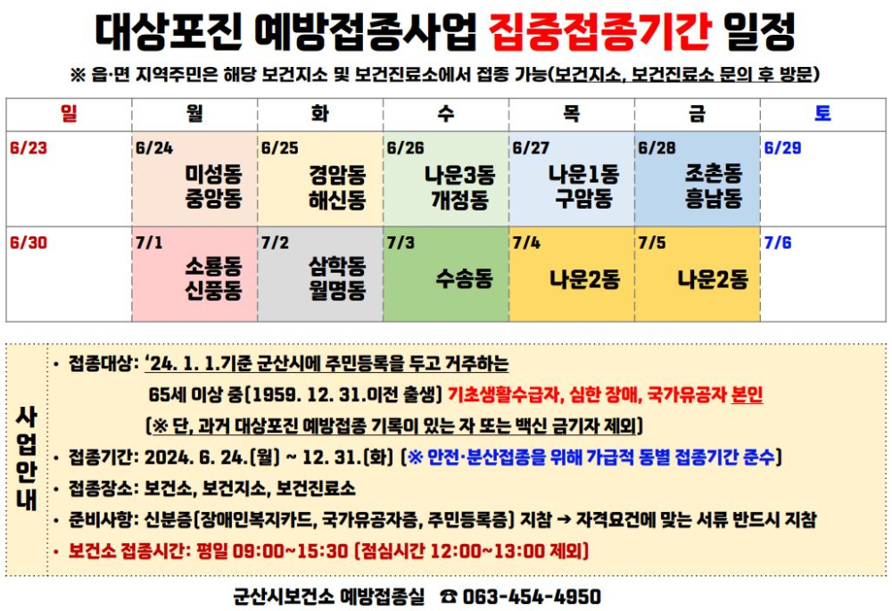 664 2024년 군산시 취약계층 대상포진 예방접종사업 실시 다운받기 감염병관리과 24.06.18 5735