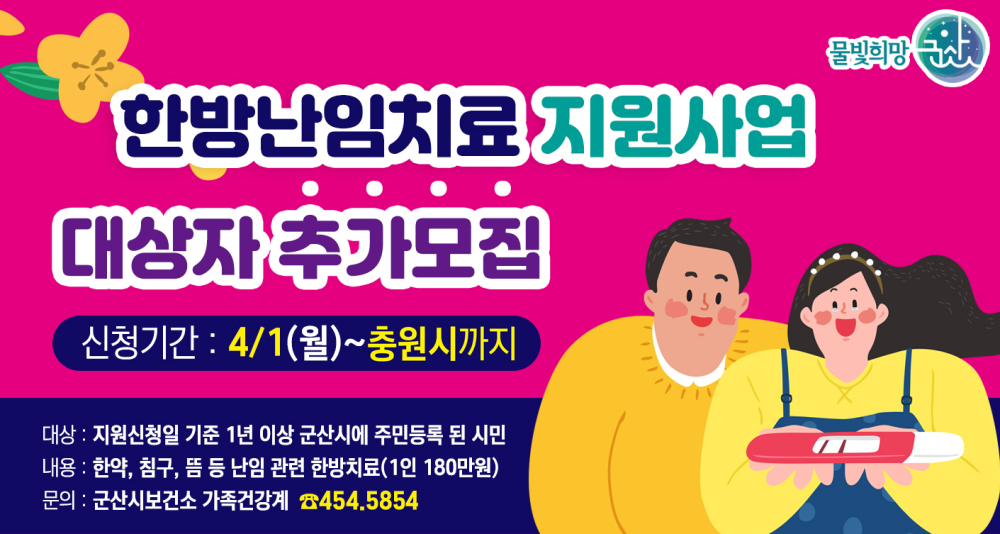 665 2024년 한방난임 치료지원 대상자 추가모집 안내(마지막 5명!) 다운받기 건강관리과 24.06.24 3702