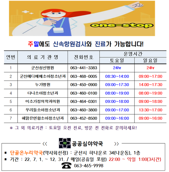 NOTICE 2026년 군산시 공공심야약국 운영 안내 (센트럴약국) 다운받기 보건행정과 25.12.26 2651