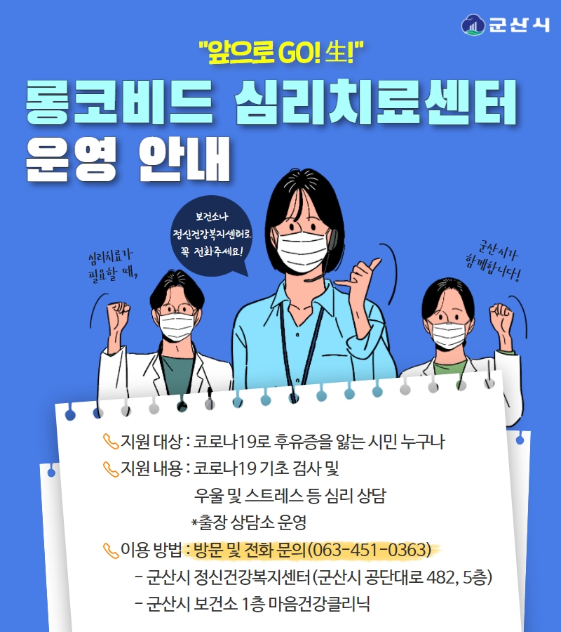 381 군산시정신건강복지센터 롱코비드 심리치료센터 운영 안내 다운받기 보건소 22.06.15 2257