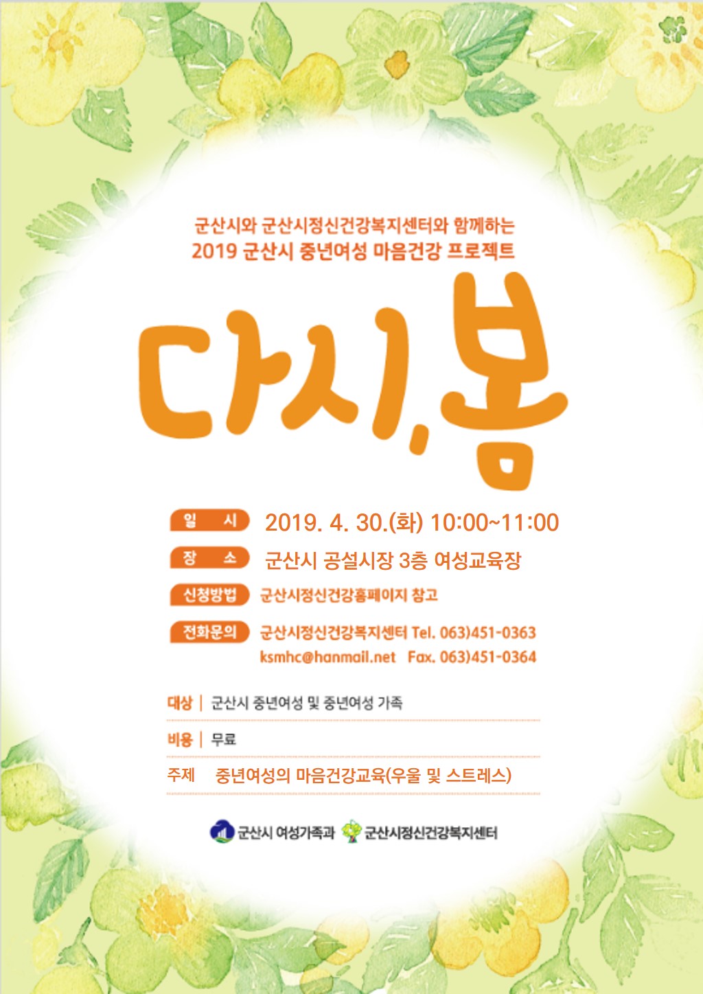 중년여성을 대상으로 마음건강교육을 실시합니다.