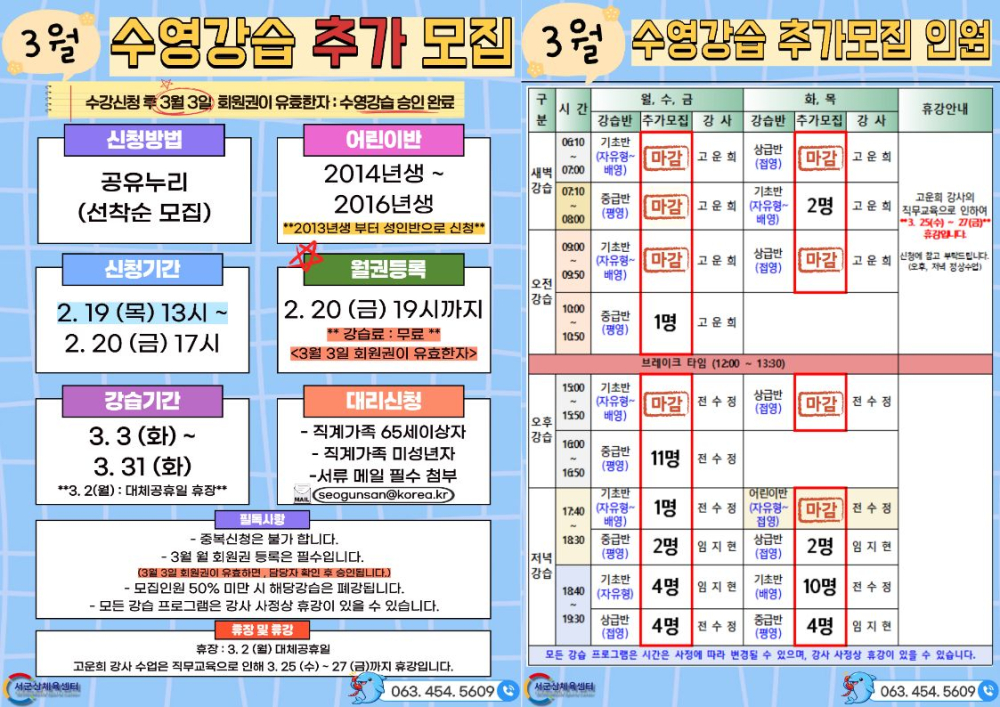 | 249 | 서군산체육센터 3월 수영강습 추가모집 안내 |