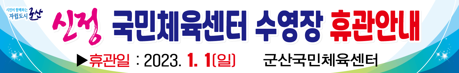 | 77 | 군산국민체육센터 수영장 신정(2023. 1. 1.) 휴장 안내 |