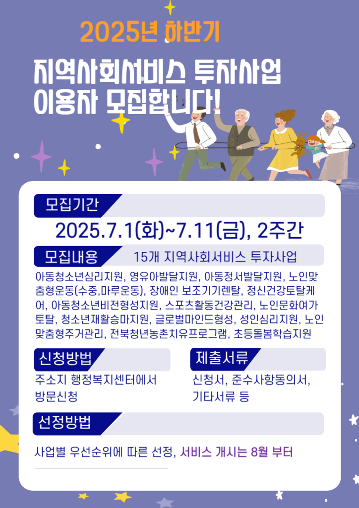 | 73 | 2025년 하반기 지역사회서비스 투자사업 이용자 모집 |