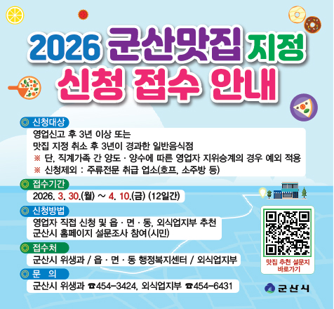 [54078] 전북특별자치도 군산시 시청로 17 (조촌동, 군산시청) 대표전화 063-454-4000 (정규업무시간 외 당직실 연결)