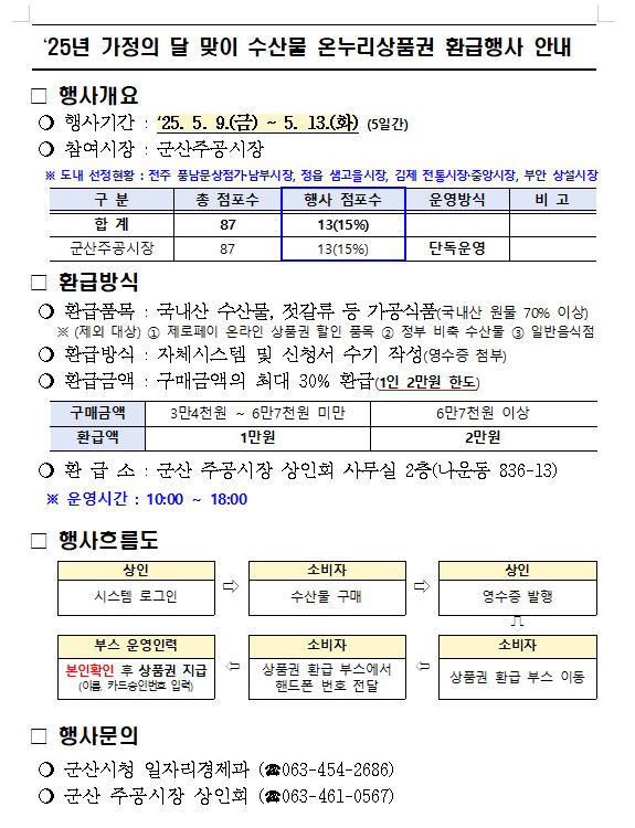 | 54 | 가정의 달 맞이 수산물 온누리상품권 환급행사 진행 안내 | 추진완료 |