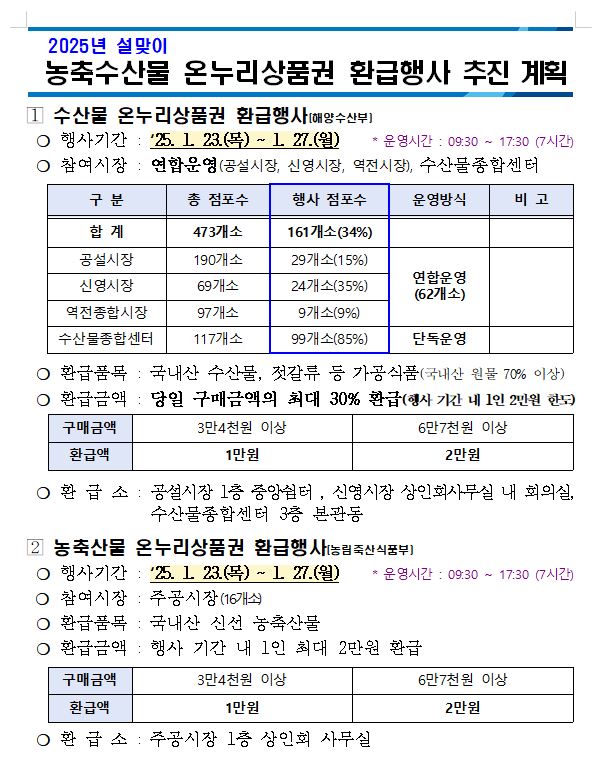 | 36 | 2025년 설명절 맞이 농축·수산물 온누리상품권 환급행사 개최 | 추진완료 |
