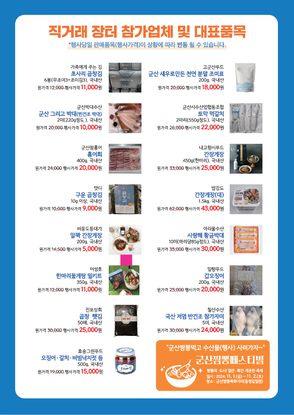 관내 다양하고 우수한 수산물을 할인된 가격으로 만나보세요