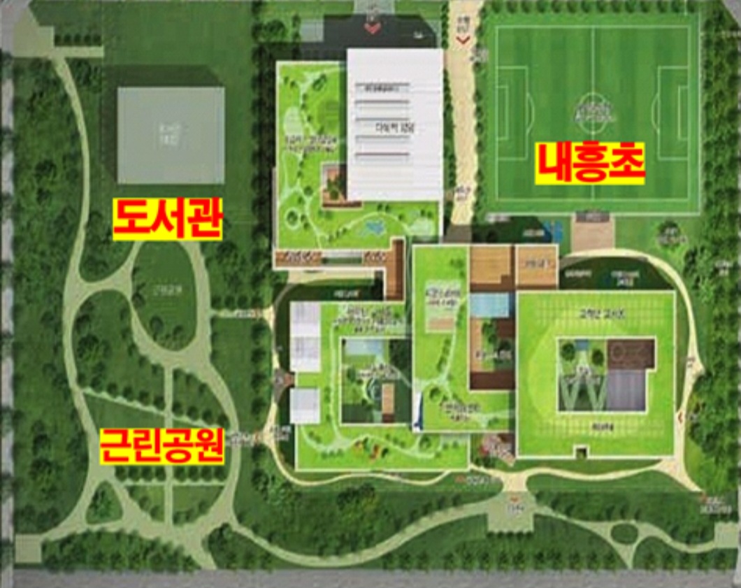 - 내흥초 옆 도서관 부지 매입비가 소요되지 않음!!