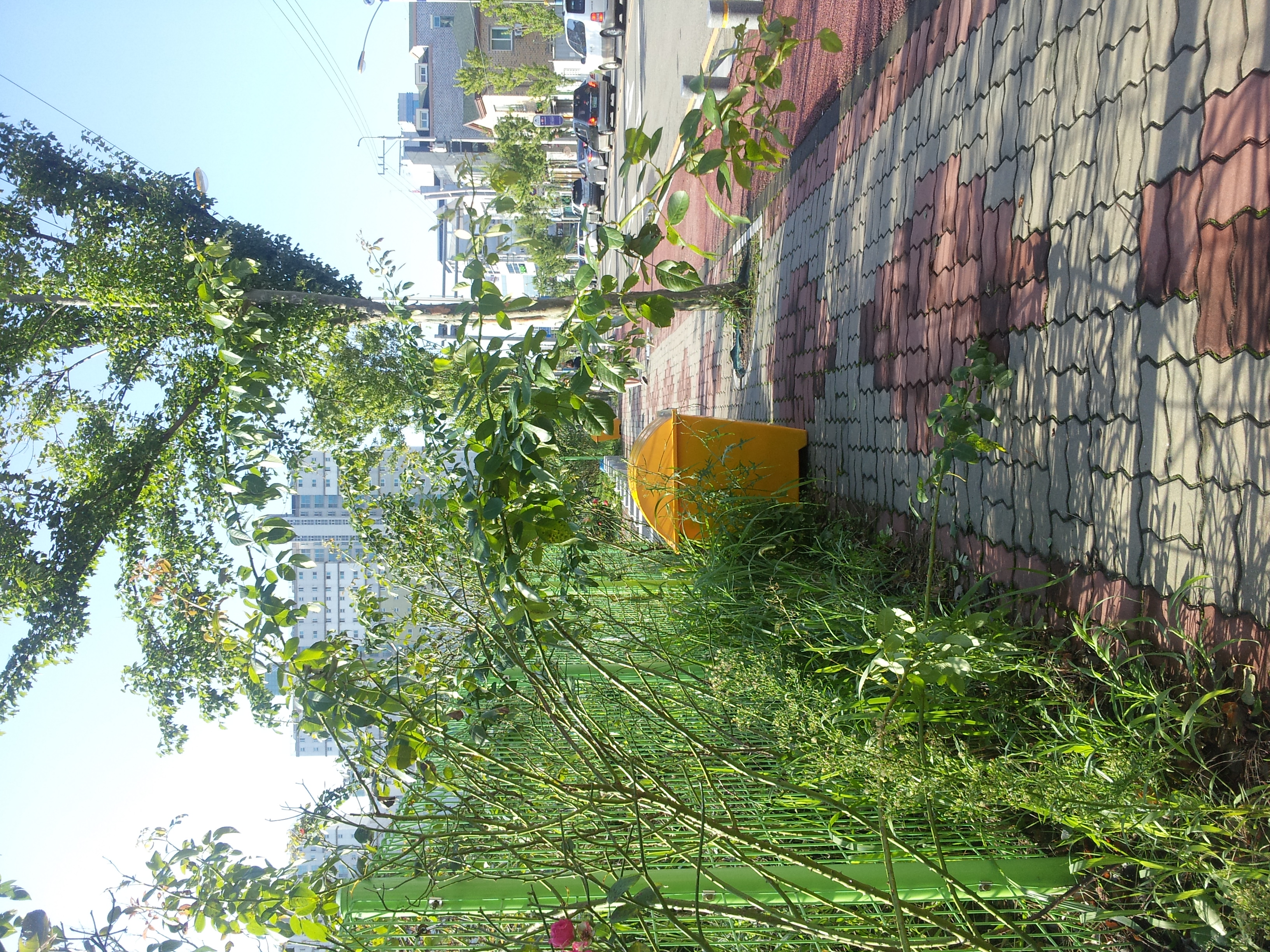수송동 보건소길쪽에서 아리울초등학교쪽으로 이어지는길에 철재울타리넘어로 장미나무가지가 늘어져있고 바로밑으론 잡초또한 무성히 자라나있고 공원입구쪽엔 모래보관통이 인도에 놓여있어서 인도에 통행이 불가능합니다. 자전거통행로로 사람과 자전거가 혼잡하게 다니다보니 무척이나 불안하고 특히나 우리에 어린학생들에겐 매우 위험한 상황이 이어지고 있읍니다.