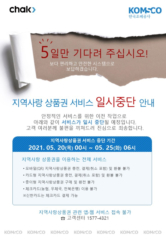 | 65 | 군산사랑상품권 서비스 일시중단 안내(5.20~5.25) |