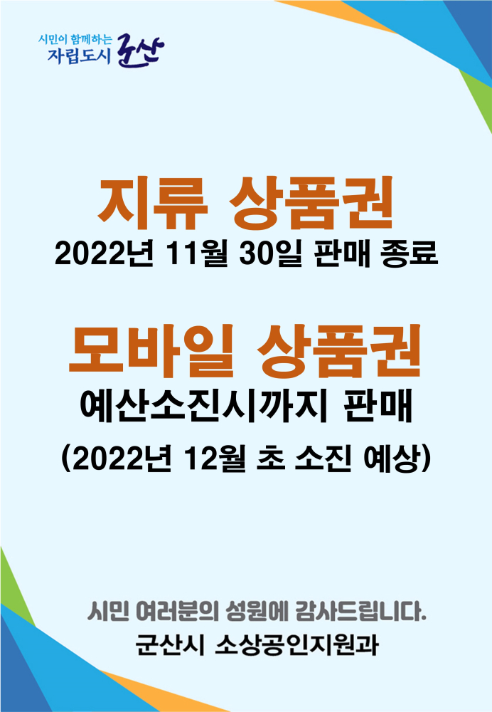 | NOTICE | 군산사랑상품권 유효기간은 5년입니다! |
