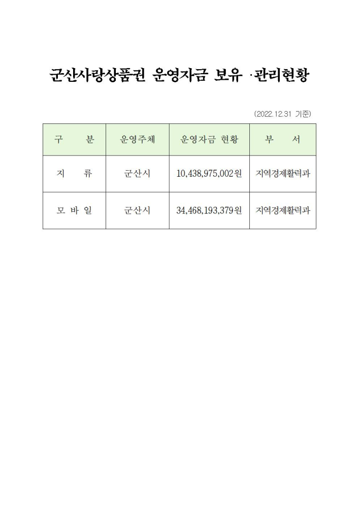 | 112 | 군산사랑상품권 운영자금 보유,관리 현황 |
