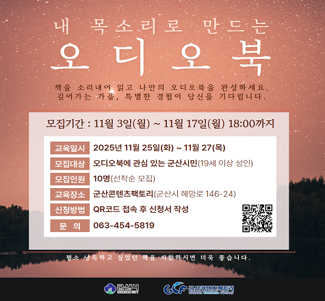 [군산콘텐츠팩토리] 2025 영상콘텐츠 메이커 양성 교육시민분들의 많은 참여 부탁드립니다.2025.10.14