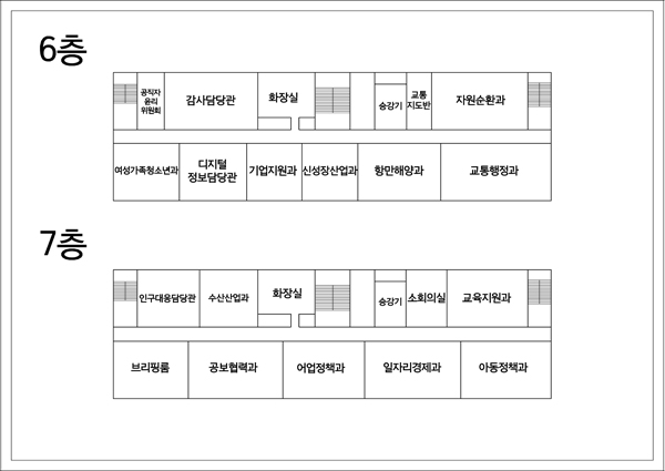 • 어업정책과 / 수산산업과 / 교육지원과 / 브리핑룸 / 공보협력과 / 인구대응담당관 / 일자리경제과 / 아동정책과
