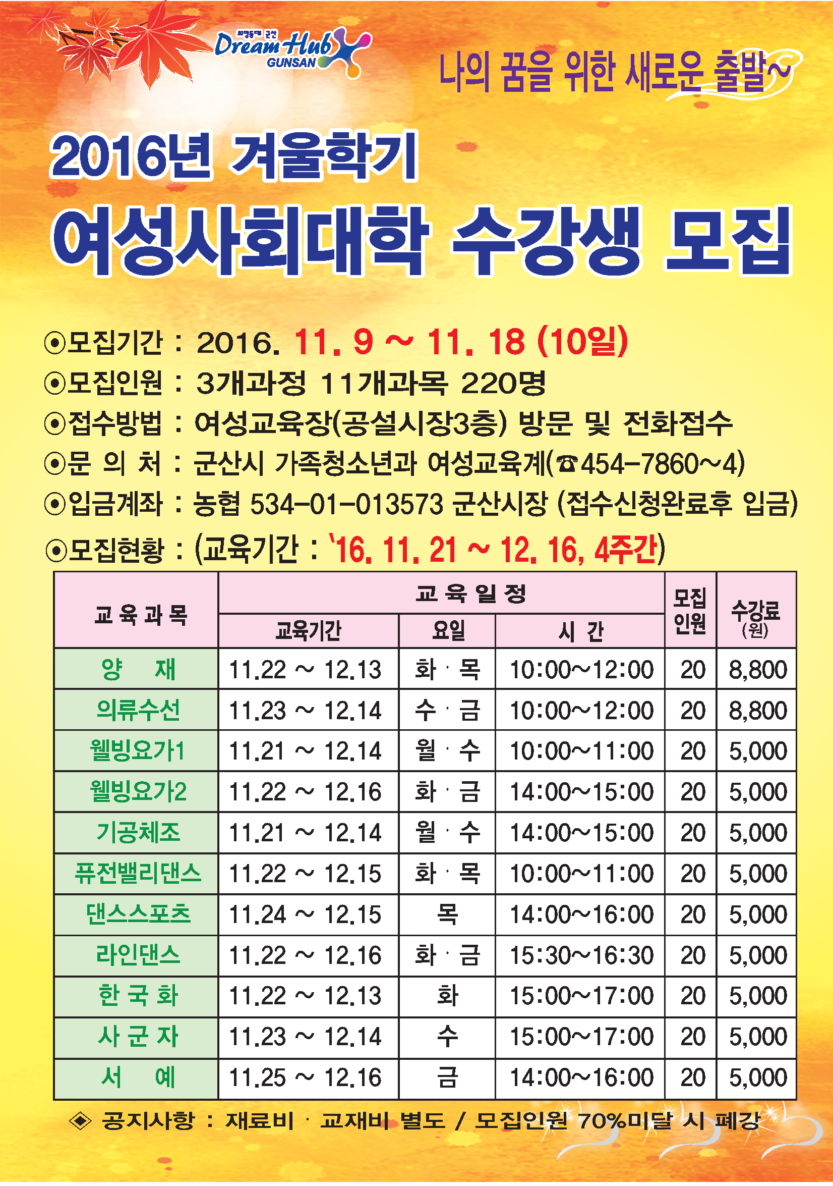 | 14 | 2016년 겨울학기 여성사회대학 수강생 모집 |
