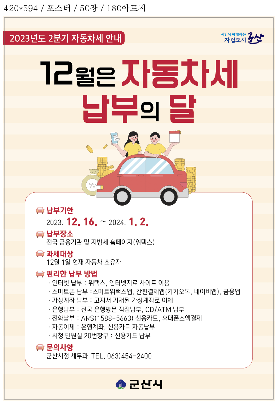 ※ 시민여러분이 납부하신 자동차세는 우리시의 지역개발 및 복지 증진을 위한 소중한 재원으로 사용됩니다.