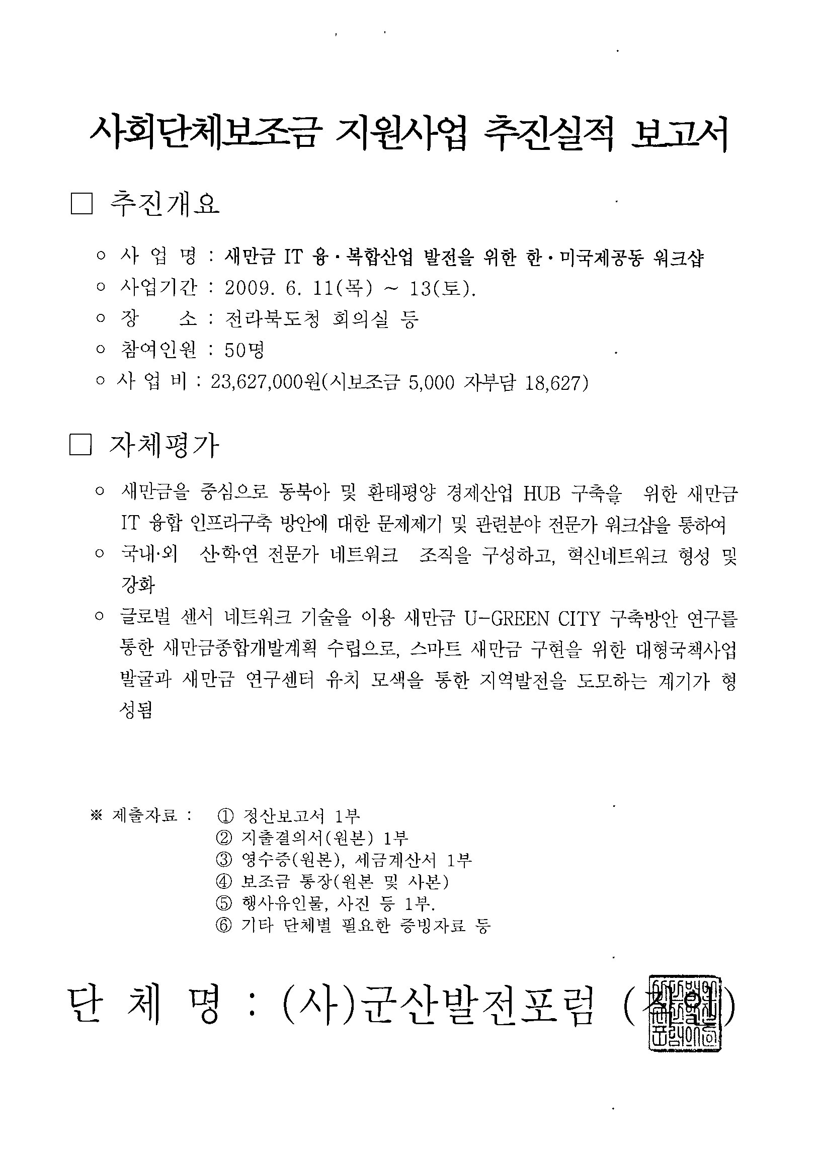 | 71 | 2009년도 사회단체보조금 정산보고서 및 성과표 |