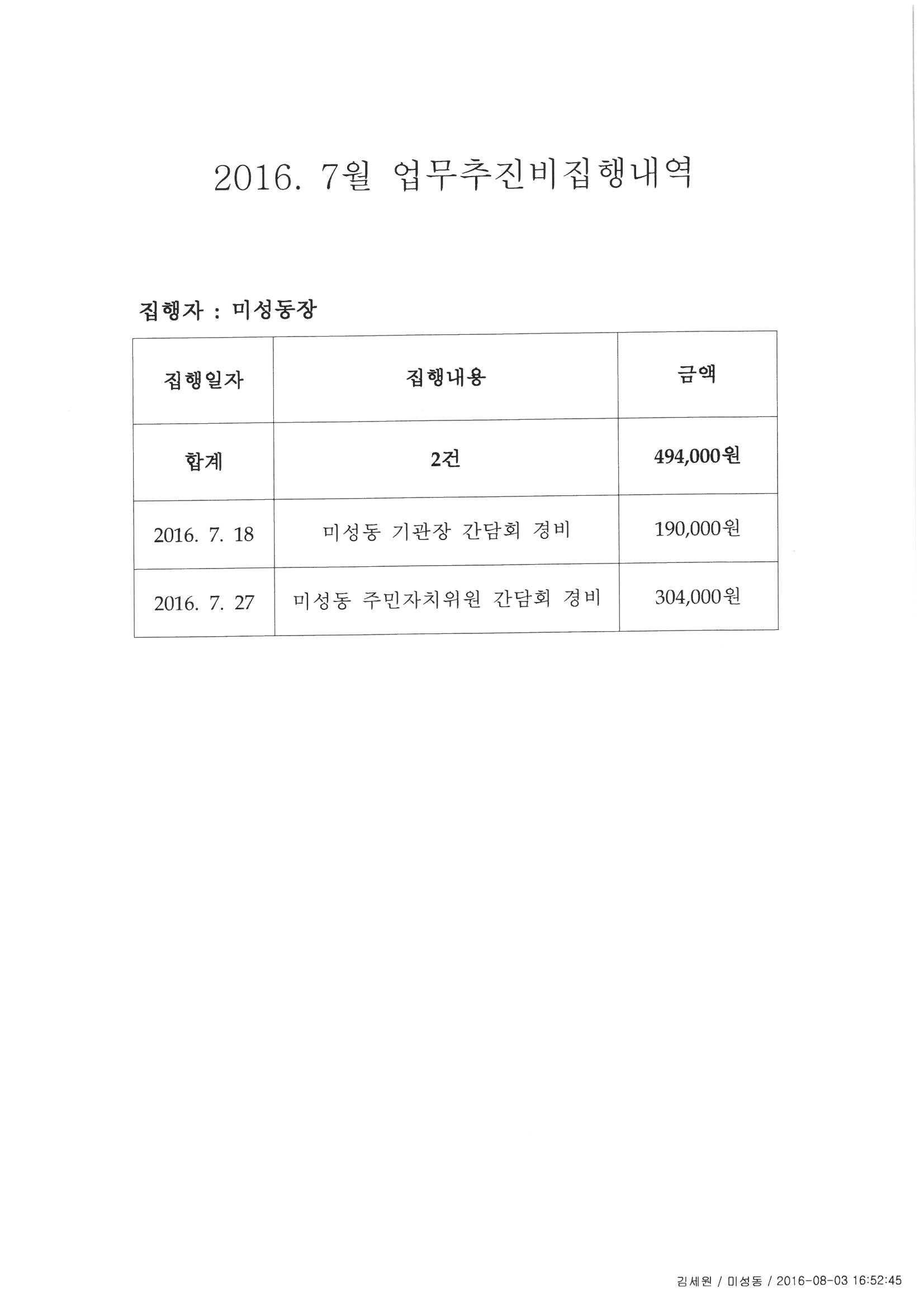 | 536 | 2016년 7월 중 업무추진비 집행내역(미성동) |