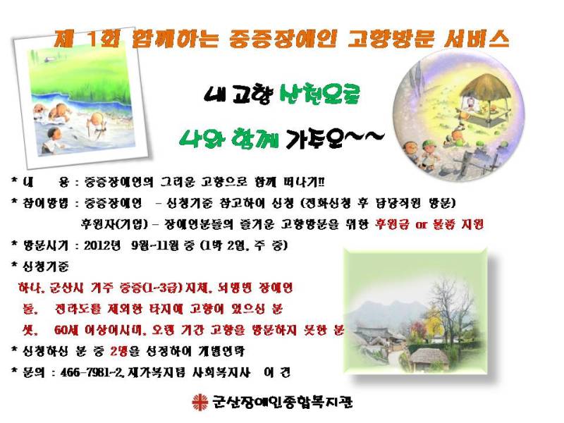 5576 제1회 함께하는 중증장애인 고향방문 서비스 접수 다운받기 *** 12.07.06 1862