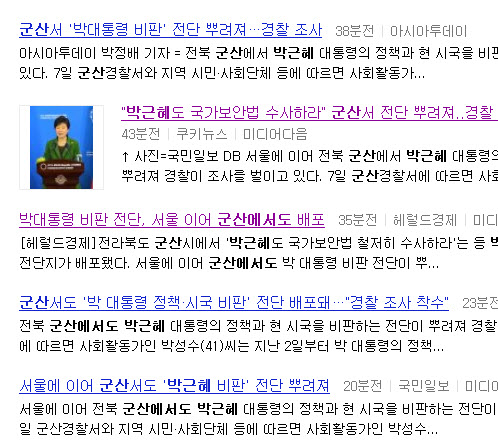 관련기사 ▶군산서도 '박대통령 비판' 전단 뿌려져..경찰 조사