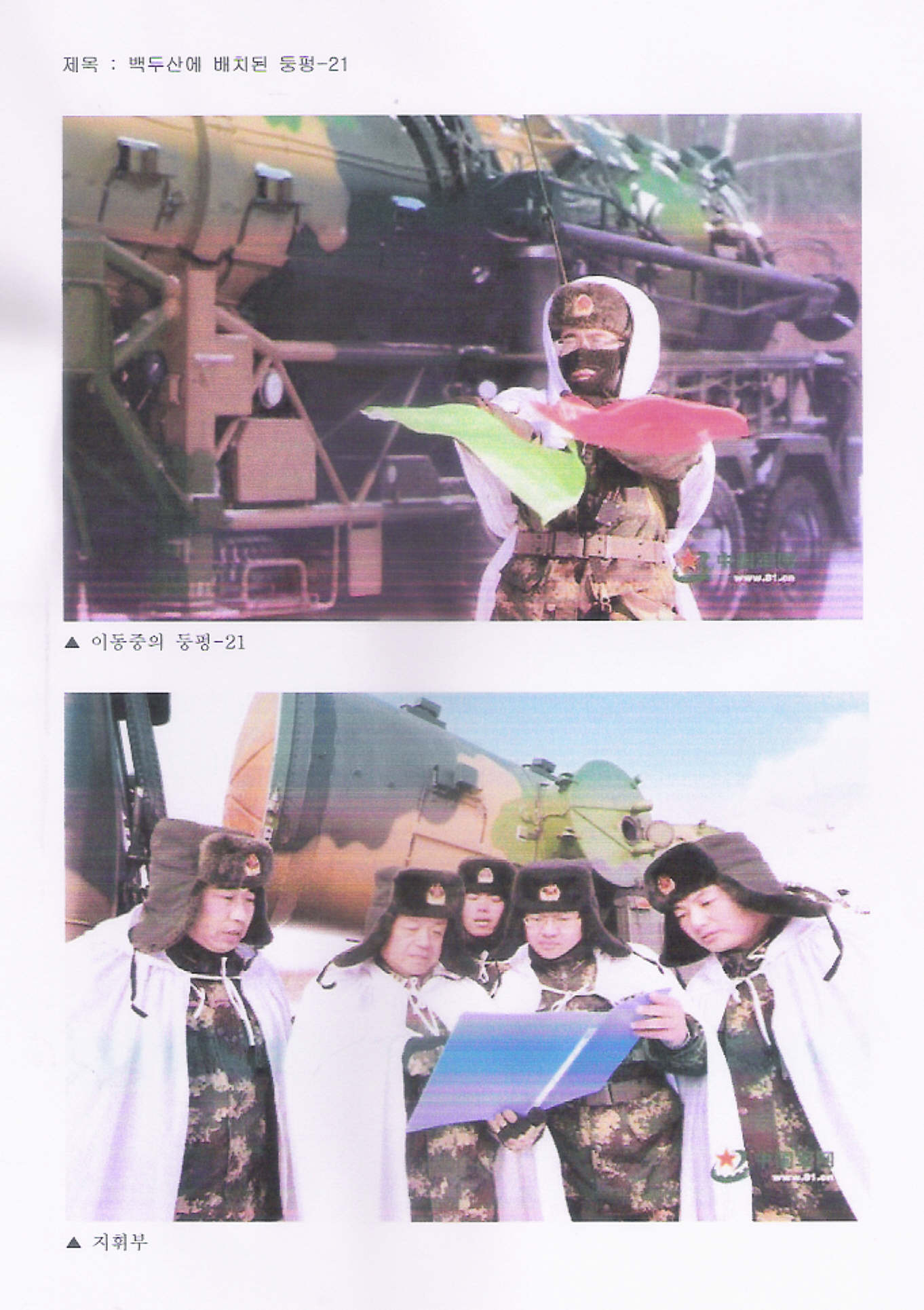 ※ 백두산에 배치된 중국 둥펑-21 미사일 사진은 첨부 참조