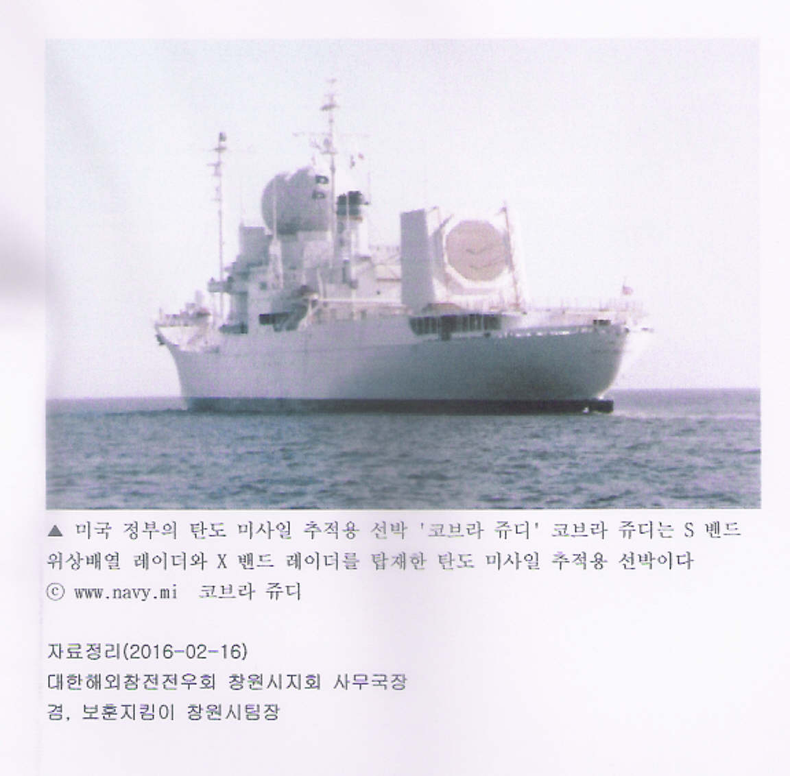 미국 정부는 또 s-밴드 위상배열 레이더와 x-밴드 레이더를 탑재한 탄도 미사일 추적용 선박을 북태평양 상에 항시 배치하고 이 배에 '코브라 쥬디'(cobra judy)라는 암호명을 부여했다.