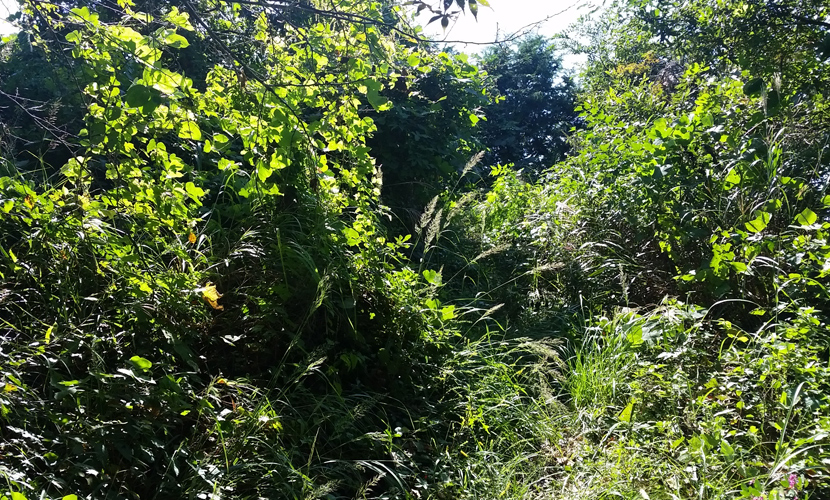 잡초가 무성해 구불길인지 잡초길인지 알 수 없고
