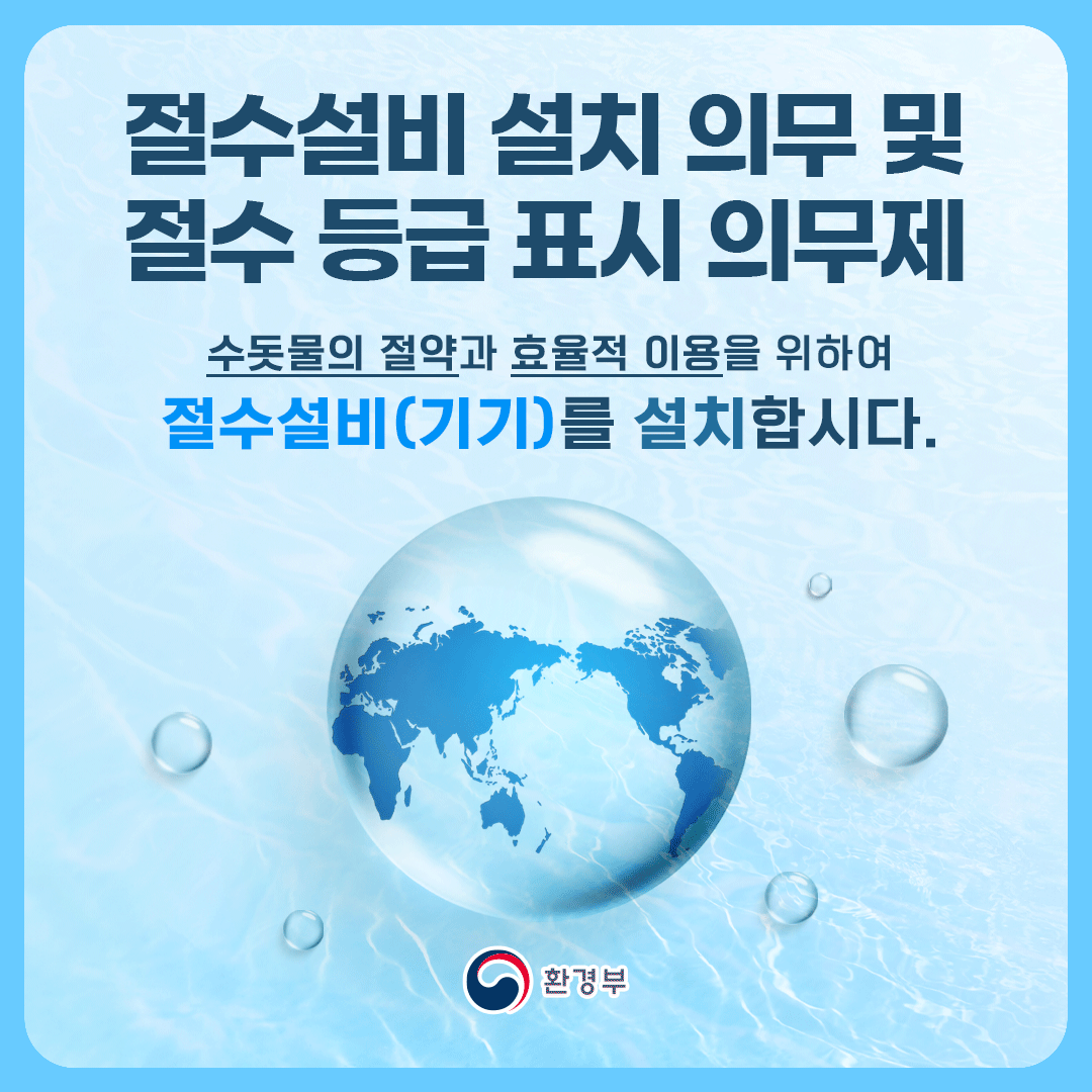 수도물의 절약과 효율적 이용을 위하여 절수설비(기기)를 설치에 동참을 당부드립니다.