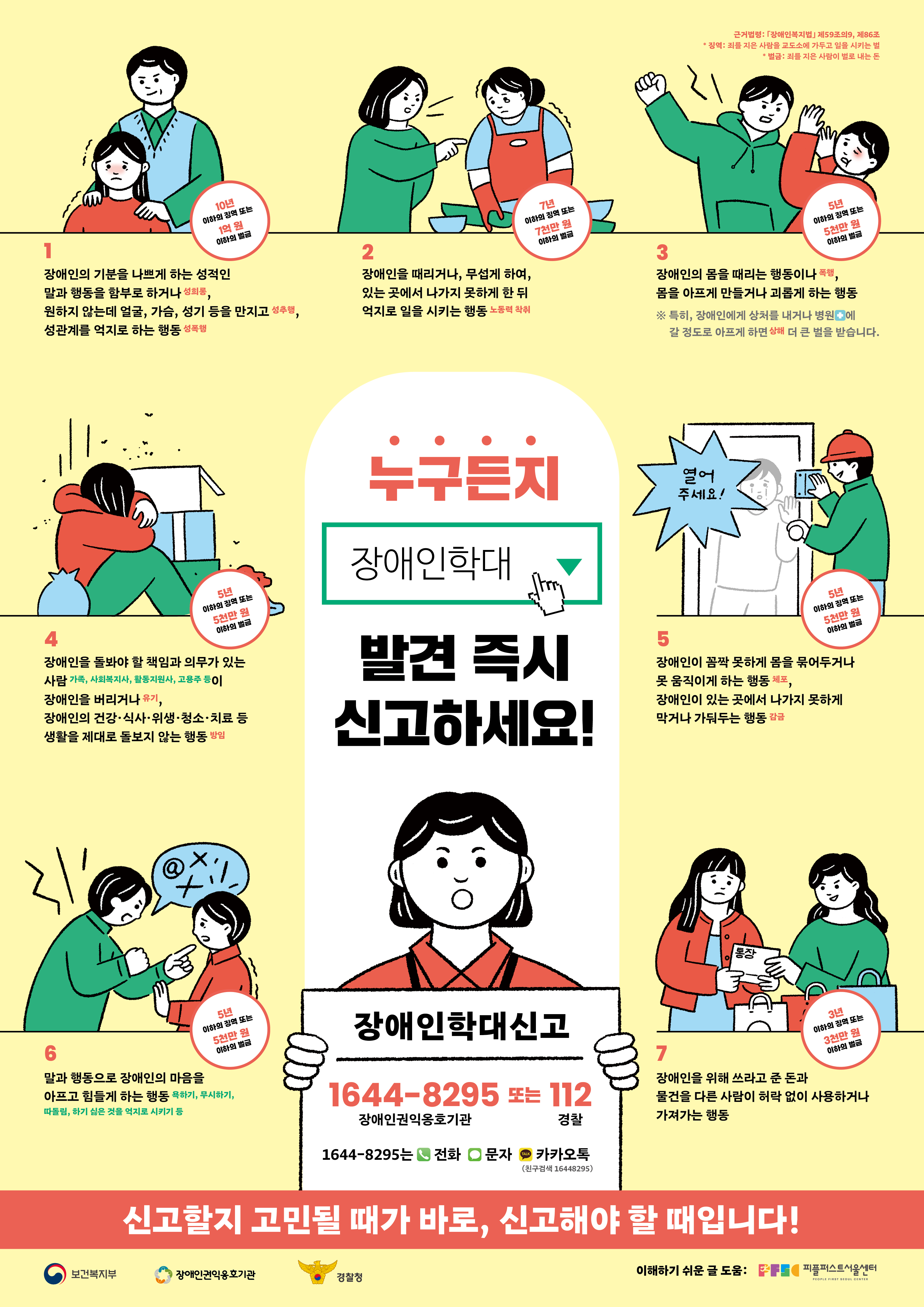 장애인학대신고 1644-8295(장애인권익옹호기관) 또는 112(경찰)