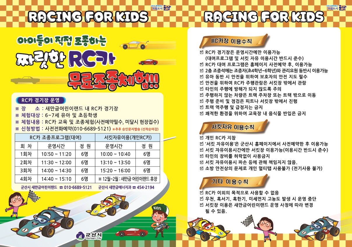 | 5809 | 군산 새만금 어린이랜드 RC카 무료조종체험 예약 안내 |