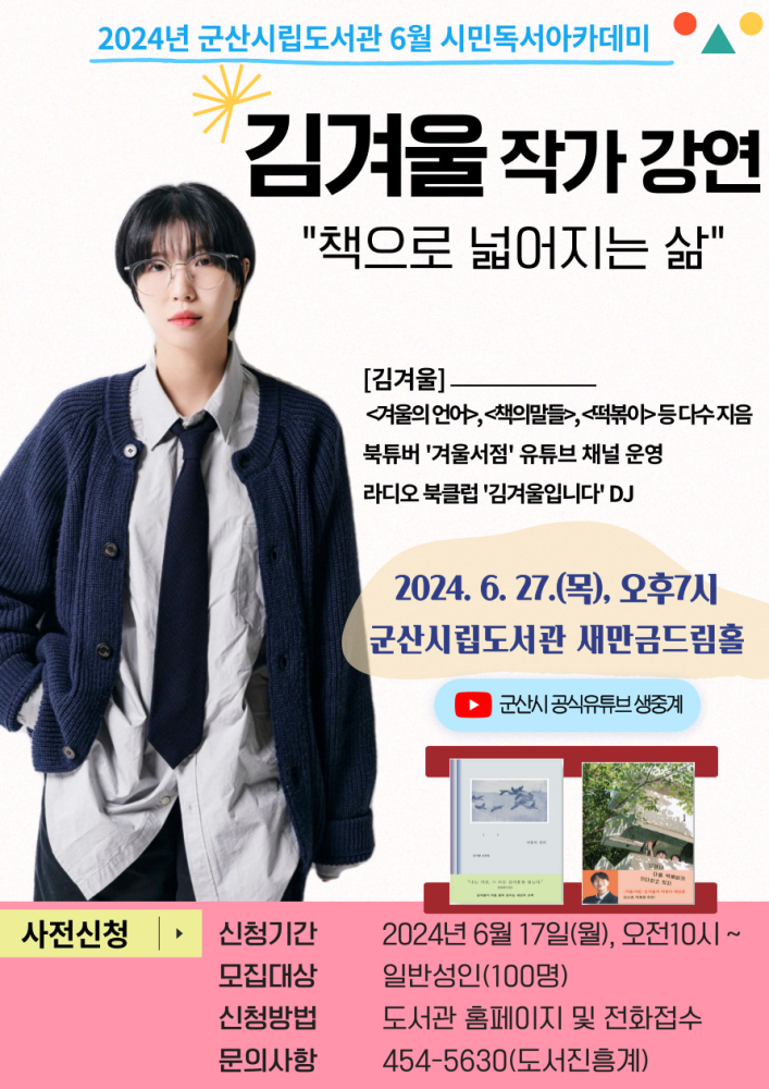 | 327 | 2024년 시립도서관 6월 시민독서아카데미 <김겨울 작가 강연> |