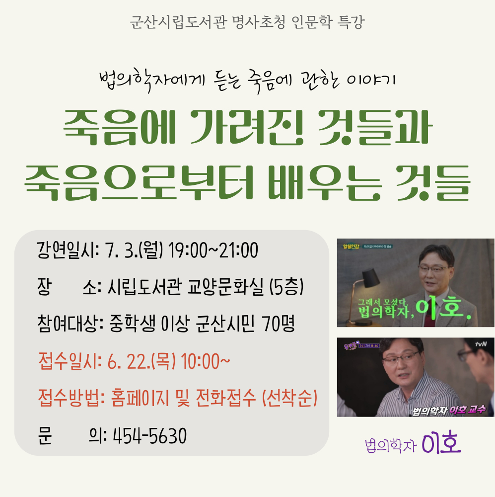 | 255 | 2023년 군산시립도서관 <명사초청 인문학 특강> - 이호 법의학자 강연 |