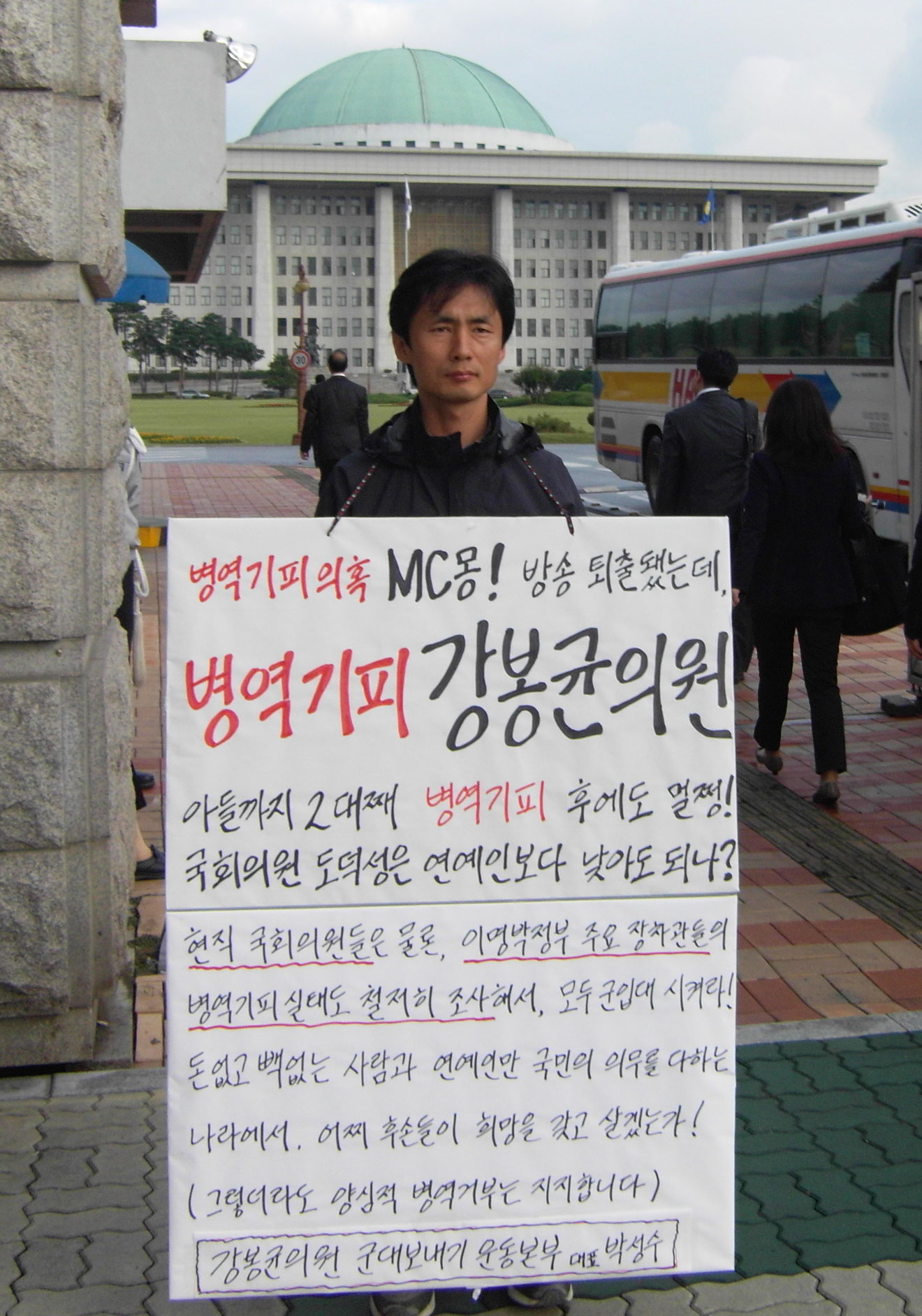 으로 2010년 10월 4일, 5일에 걸쳐 다음과 같이 국회 앞 1인 시위를 임했다.