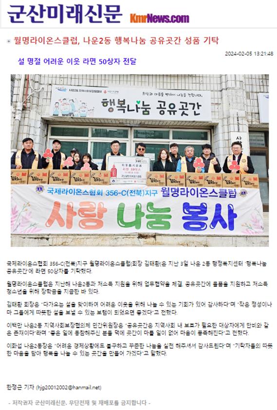 | 213 | 월명라이온스클럽, 나운2동 행복나눔 공유곳간 성품 기탁 |