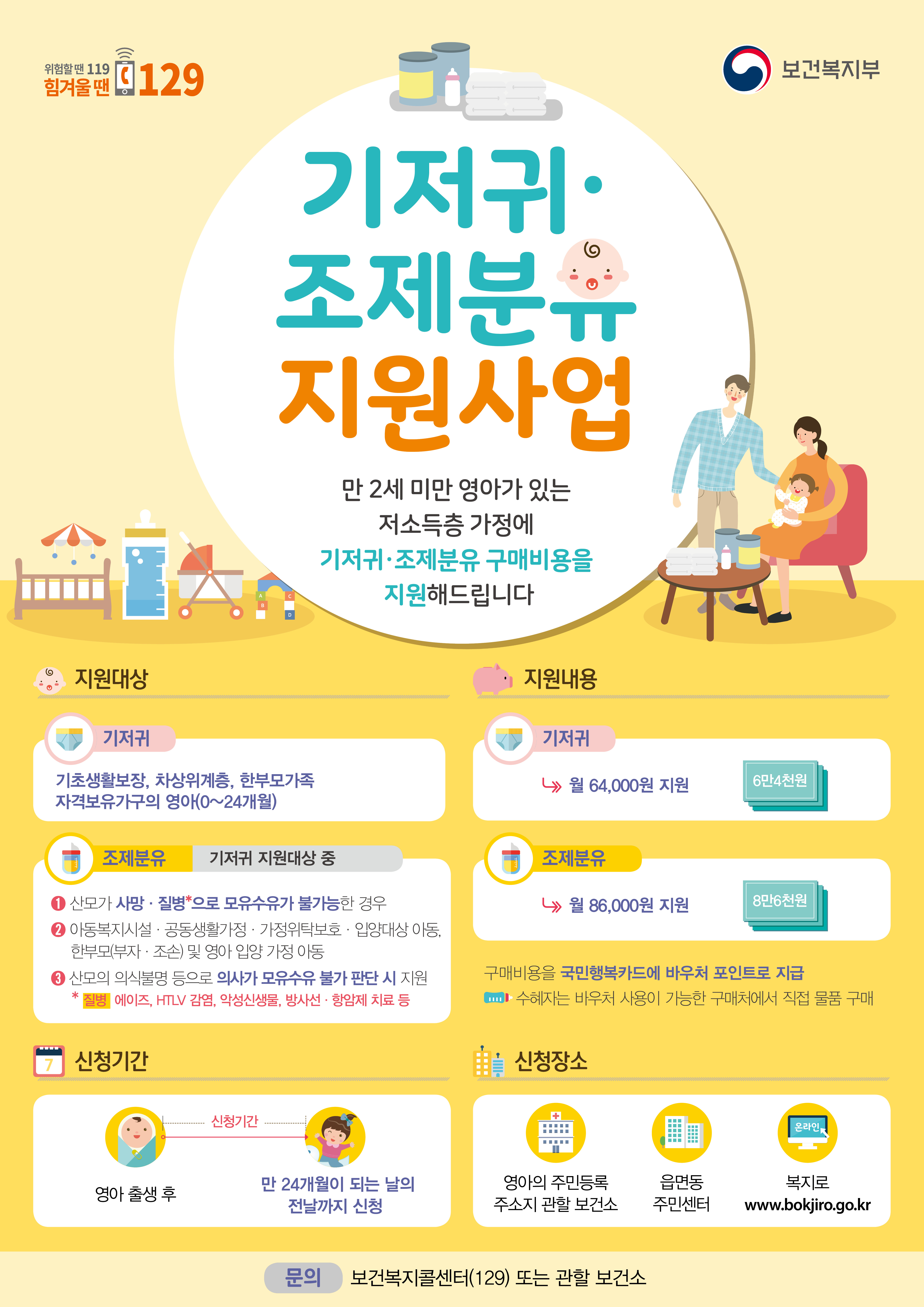 - 기초생활보장, 차상위, 법정 한부모가족 수급권자 인 경우, 영아별로 지원
