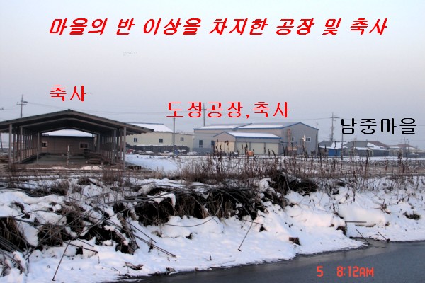 몇 달전부터 저희 마을 한복판에 도정공장 및 축사, 그리고 퇴비사를 신축하고 있습니다.