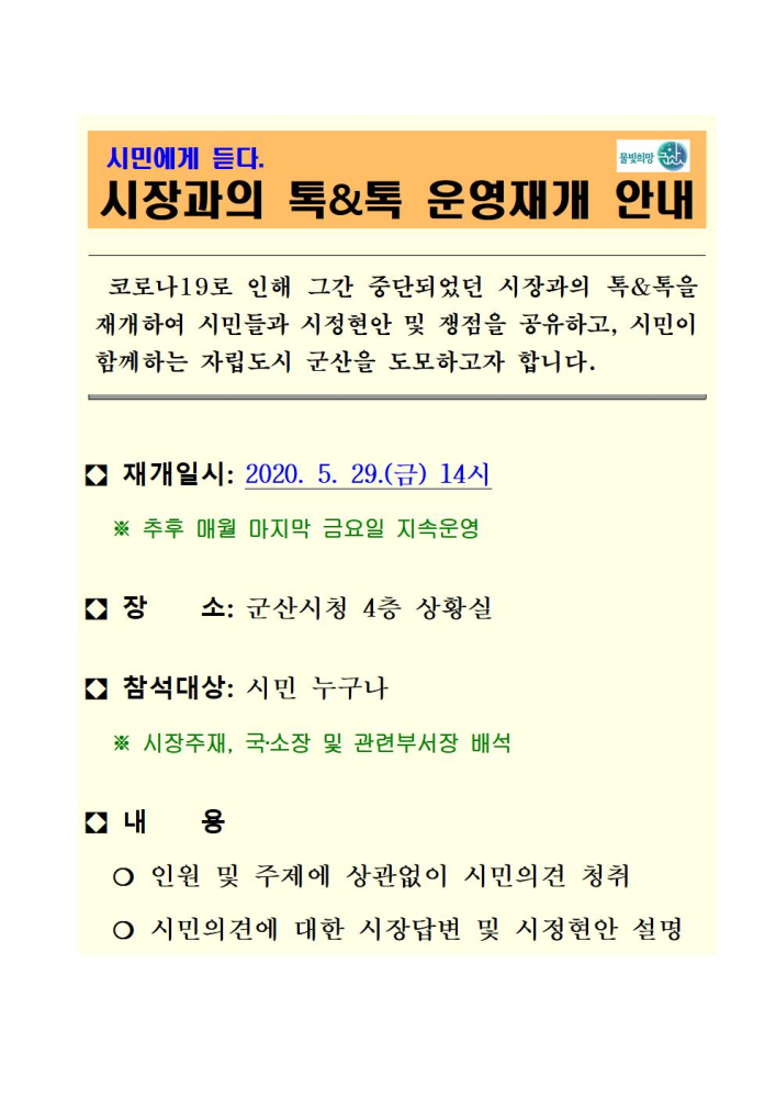 군산시청 에서 제작한 "시장과의 톡&톡"저작물은