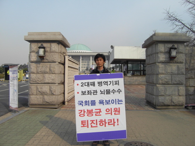 이러한 국회의원은 지역은 물론, 국회와 이 나라를 욕되게 하는 바, 앞으로 도 국회 앞에서 강봉균 국회의원 퇴진 1인 시위를 꾸준히 지속할 예정입니 다.