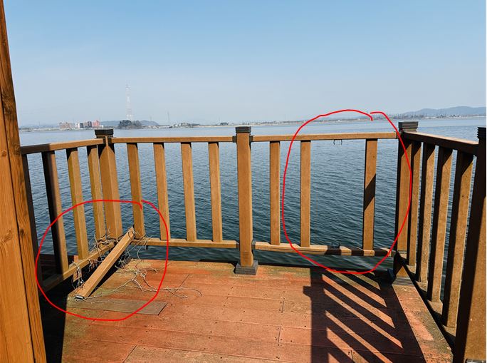 새조망대 쪽에 있는 울타리가 부서져있었어요