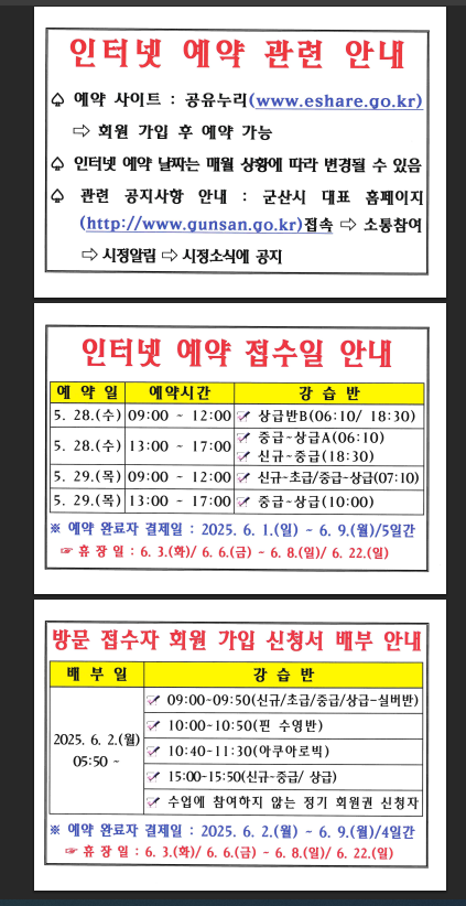 2. 인터넷 예약 접수일 : (성인반) - 2025. 5. 28.(수) ~ 5. 29.(목) / (어린이반 추가 모집 없음) * 첨부 파일 확인
